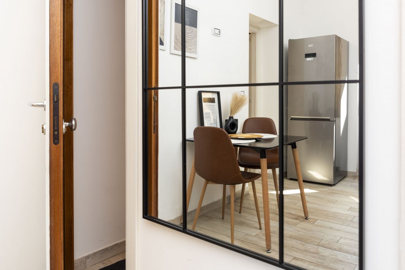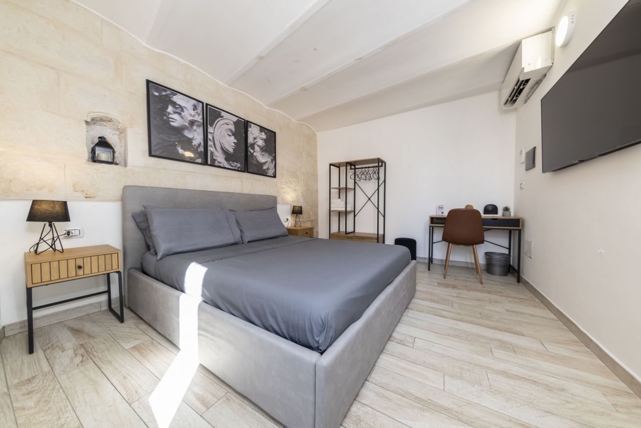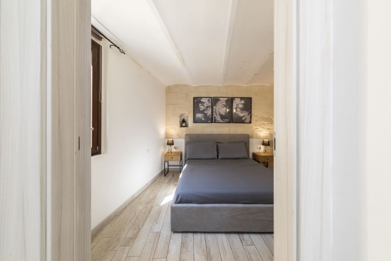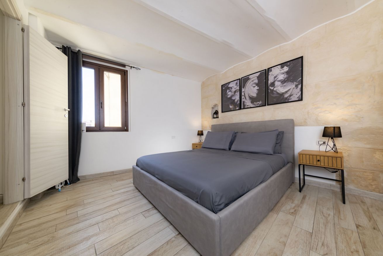 La camera da letto, calda e accogliente, è pensata come un vero spazio di relax. A disposizione degli ospiti uno SMART TV Samsung UHD 4K da 50” con Netflix e Prime Video inclusi, TV satellitare Tivùsat, Wi-Fi veloce in tutta la casa e armadi spaziosi, per un soggiorno comodo e senza pensieri.